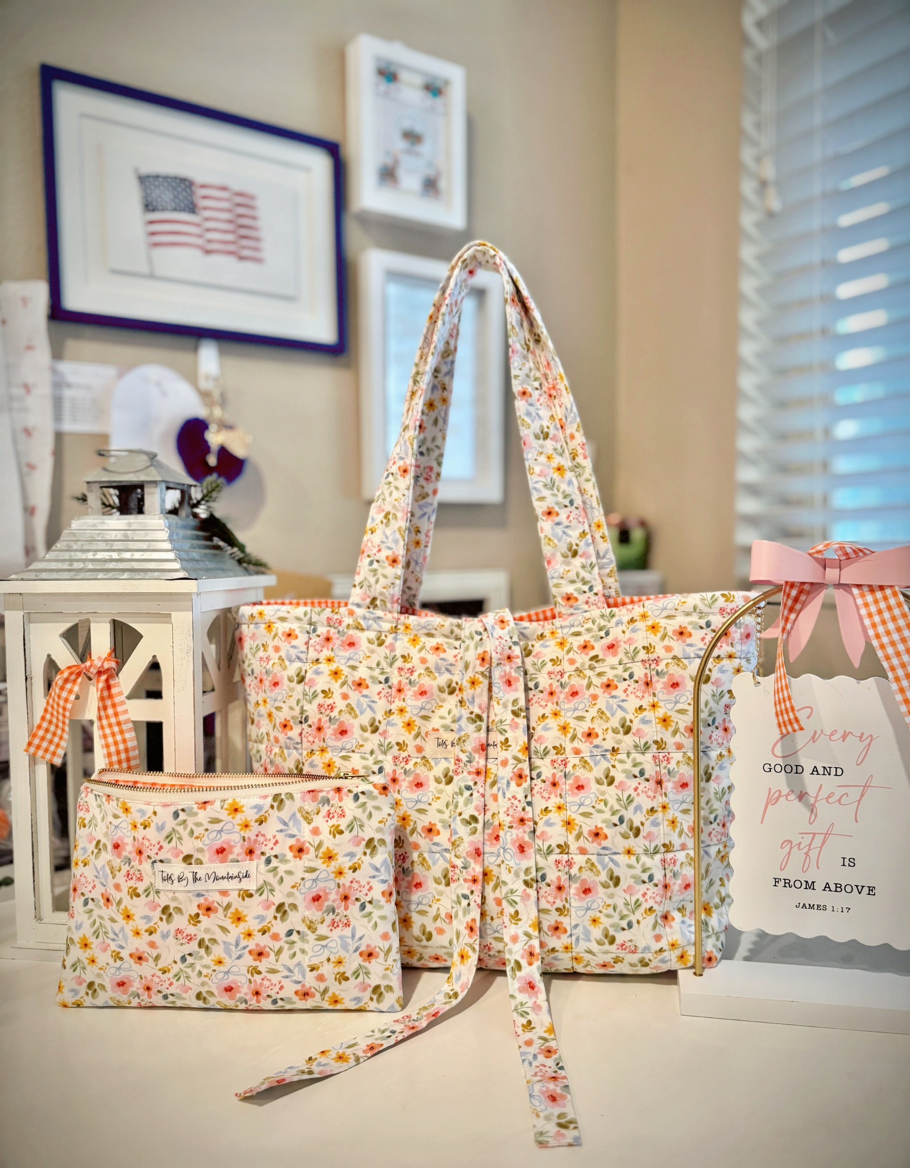 Introducing the “Lily” Flowers and Bows Tote featuring a beautiful floral design and a complimentary wallet for a limited time!